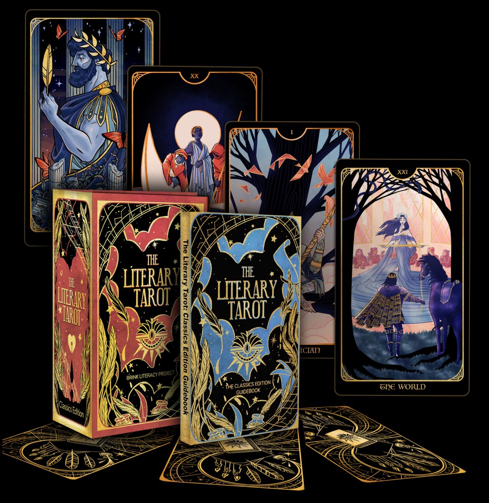 Working with the storytellers and a diverse and talented art team, Brink Literacy Project has tapped into the magic of classic literature to bring a whole new kind of tarot deck to life. The original wave of contributors included folks like Margaret Atwood, Vita Ayala, Victor LaValle, Kelly Sue DeConnick, Stephen Graham Jones, Roxane Gay, Mark Millar, and dozens more.
