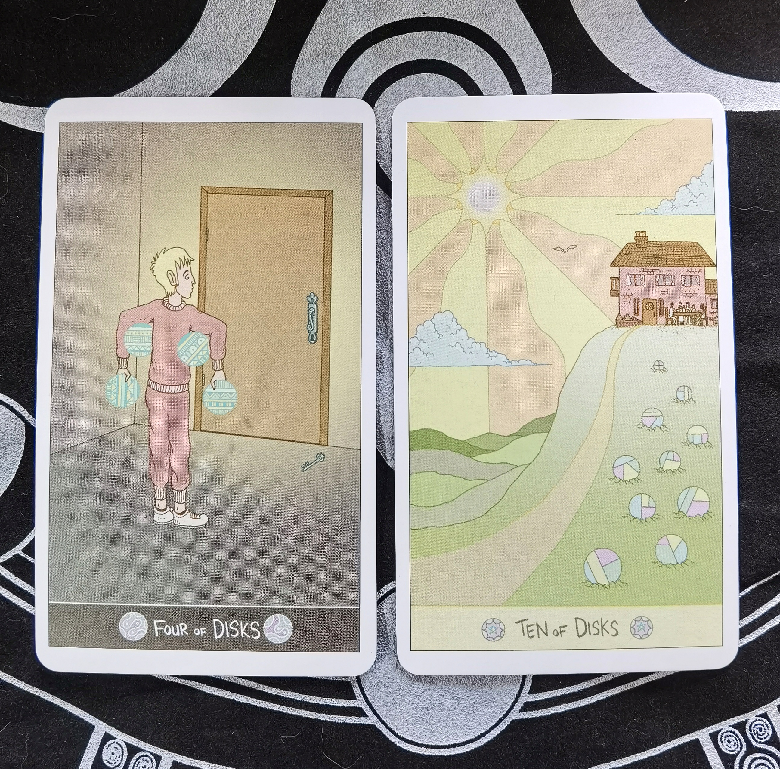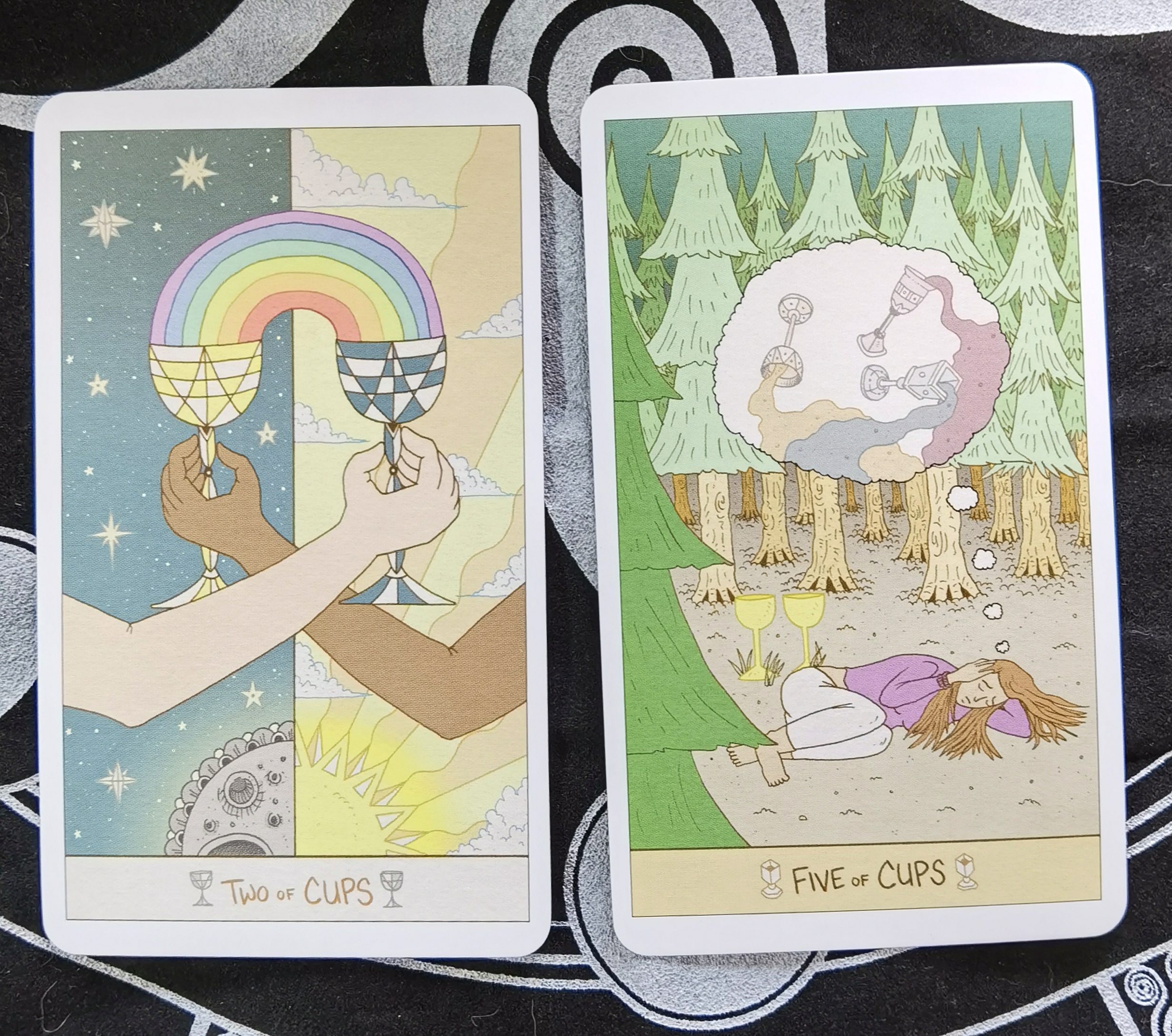 Now I’m going to try not to be too gushy but I love these cards. I really like the soft colors used. The cards are based on the traditional RWS system but have a wonderfully modern twist.