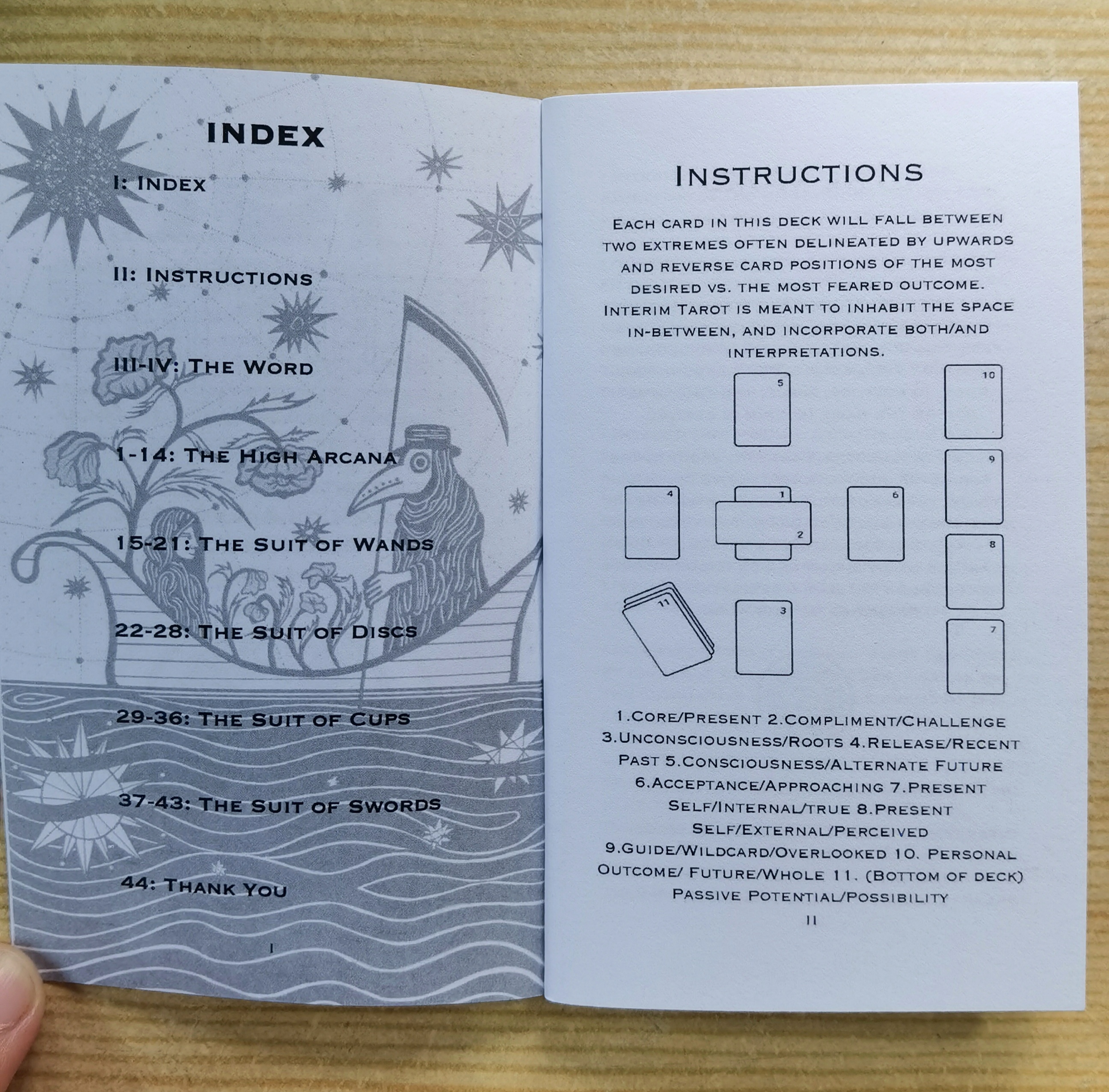 The Interim Tarot is really unique deck, based on the Rider Waite Smith system with influences from the Five Element Theory, the 24 hour Circadian clock, the somatic body, fairytales, animal medicine, folklore, mythology, biology, contemporary media, queer theory and literature.